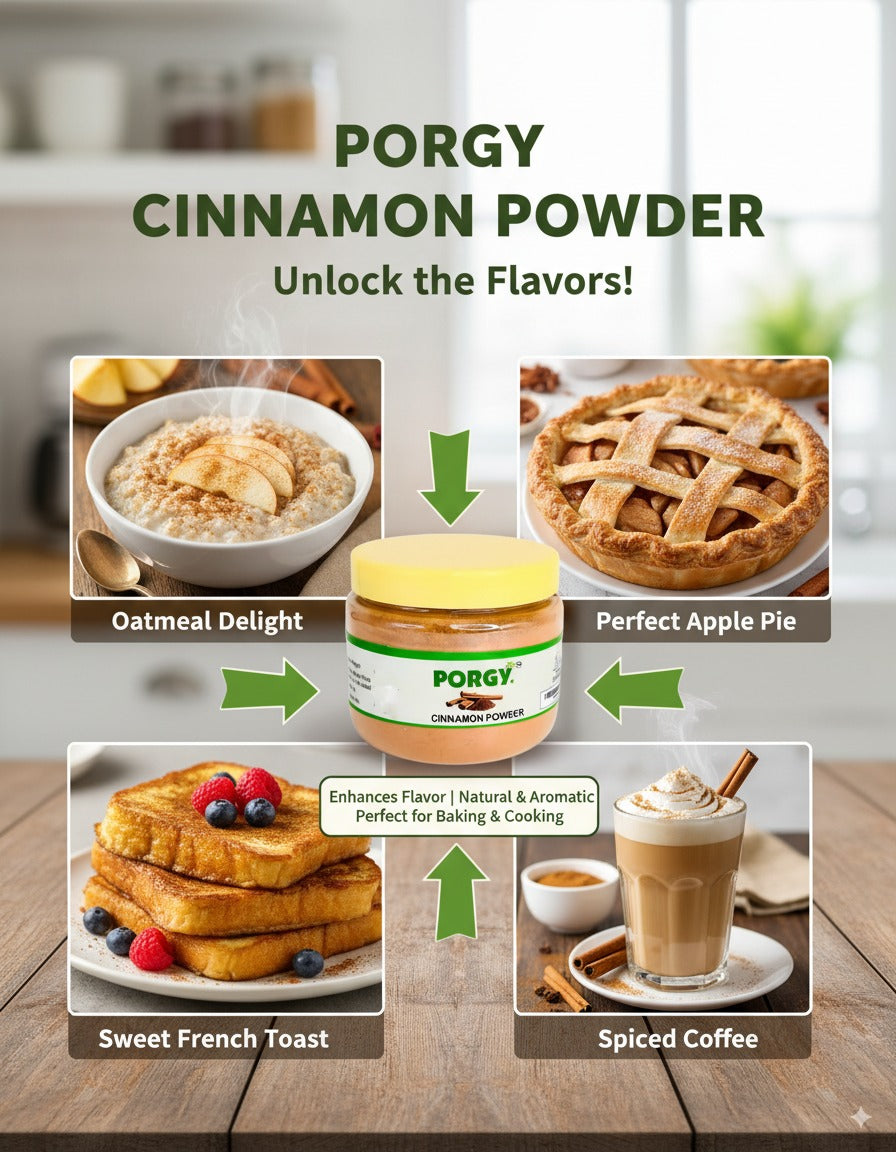 PORGY Premium Spice Powder Combo – 500g Anardana, Cinnamon, Red Chilli Kuta, White Pepper